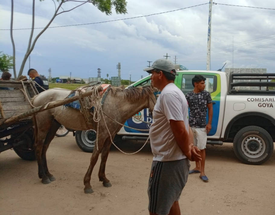 En la mañana de este martes, efectivos de la Comisaría Primera de Goya intervinieron en la zona de Villa Orestina, tras recibir un llamado alertando que un hombre estaba maltratando a un caballo.