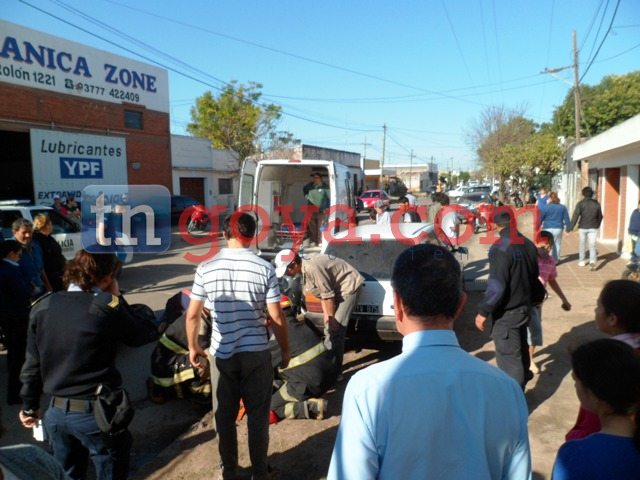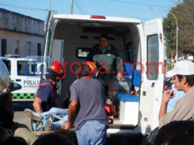 Asistió a lugar una dotación de bomberos voluntarios quienes procedieron inmovilizarla a la herida, efectivos policiales de comisaria 4tª a cargo del comisario Gómez, personal de transito la ambulancia del hospital regional en la que fue trasladada y peritos dependientes de a UURRII de Goya.
