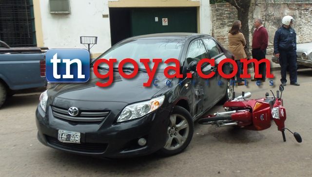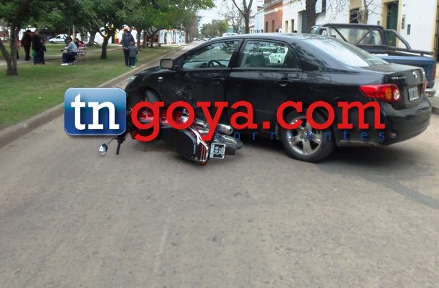 En horas del mediodía del lunes al cerca de las 13 horas se registro una colisión de un motociclista con un automovilista por calle B.Mitre al 600 el rodado menor era guiado por un joven de apellido Valdés Martin, quien circulaba a bordo de una motocicleta marca Wave de coló rojo dominio 366JGL, resultando con escoriaciones varias en tanto el vehículo Toyota de color negro chapa patente IAF 609 era conducido por la señora María Muniagurria quien resulto ilesa en el accidente. (IMÁGENES)