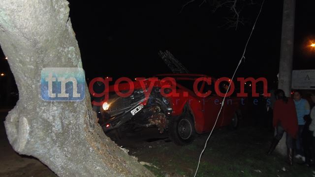 En la noche del sábado cerca de las 21,30 horas por calle Av. Francisco Saá a la altura de Brasil una camioneta impacta de frente luego de perder el control tras pasar una loma de burro a toda velocidad, este cambia bruscamente de carril y termina su recorrido junto al árbol. El vehículo, una camioneta Chevrolet C10 de color rojo domino WHY 680 era guiado por un hombre identificado como LOPEZ MIGUEL quien fue asistido de manera inmediata por bomberos voluntarios y trasladado al nosocomio local en ambulancia luego de ser inmovilizado. (Imágenes)