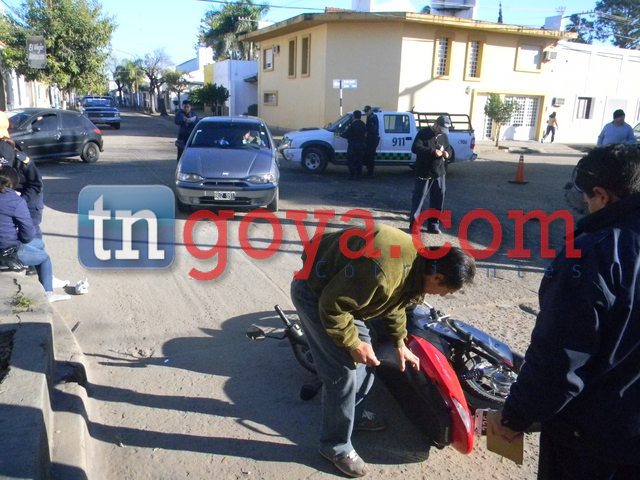 Se registro accidente en la esquina de España y 9 de Julio aproximadamente a las 09 hs del martes, donde una joven que iba a bordo de una motocicleta 110 c.c resulto herida en una de sus piernas al salir despedida luego de impactar con un automóvil Fiat Siena. La motociclista fue asistida por bomberos y luego trasladad en ambulancia al Hospital Regional para ser atendida. IMÁGENES