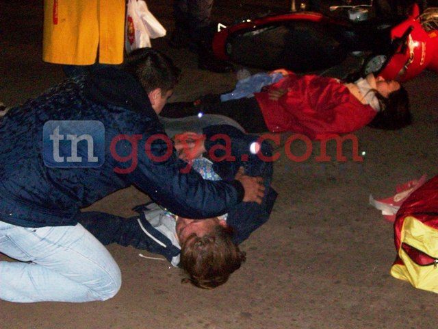 Las mismas fueron socorridos por una dotación de bomberos voluntarios y asistidos por efectivos policiales de comisaria 2dª a cargo del comisario inspector Romero. Acudió además la ambulancia del hospital regional en donde fueron derivadas ambas motociclistas, personal de inspectores y peritos dependientes de la UURRII de Goya.