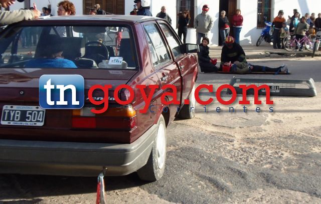 Joven motociclista malherida tras ser impactada por automóvil En la tarde del martes una joven motociclista quien se desplazaba a bordo de una moto marca Bravia de color negra dominio 400HQP conducido por Melani una chica de 17 años y que al llegar al cruce de Av. Sarmiento y Belgrano es impactada por un automóvil VW Senda de color rojo chapa patente TYB 504 guiado por el ciudadano Pedro Ramón Gómez de la segunda sección Colonia porvenir. (IMÁGENES)