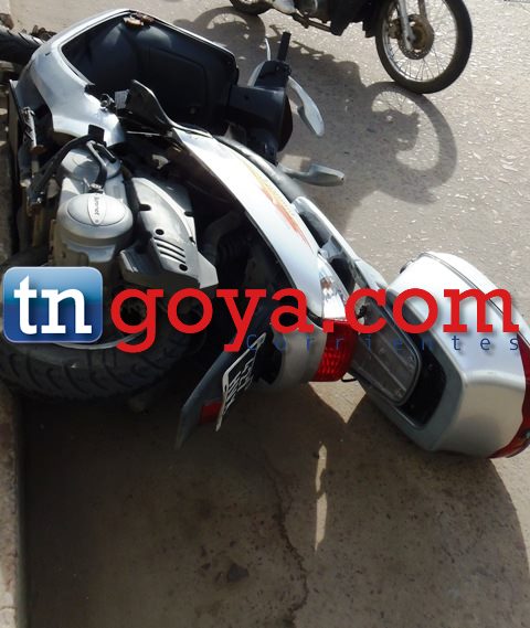 En la mañana del lunes en las intersecciones de calle Alvear y B. Mitre un motociclista identificado como Giordano Darío quien se desplazaba a bordo de una Scooter Euromot cristal 125 c/c de color gris dominio 427HVX es impactado por un automóvil Toyota Corolla de color negro chapa patente MCZ 350 guiado por el ciudadano Fernández Chain.(IMÁGENES)