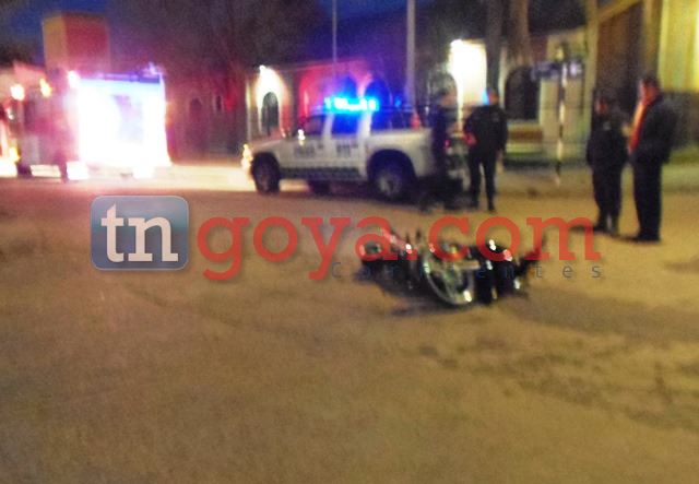 Ramón Antonio Enríquez, conducía una motocicleta Guerrero Trip de 110 c.c. y se encuentra internado en el sector de Clínica quirúrgica del Hospital Regional con fractura del fémur y golpes en la cabeza.Intervino personal de la comisaría 1ra, una dotación de bomberos voluntarios de Goya, ambulancia, inspectores de tránsito y peritos dependientes de la UURRII.