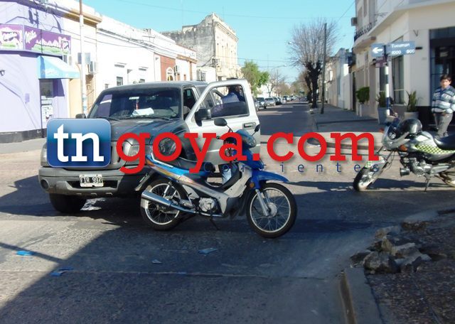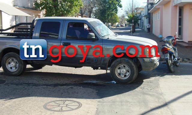 En la mañana del sábado cerca de las 10 en las intersecciones de las calles Tucumán y España impactan un grupo de jóvenes que se desplazaban a bordo de una camioneta FORD RANGER gris dominio FIR997, conducido por Torres y una pareja de apellido Almirón quienes circulaban a bordo de una motocicleta GILERA de color azul chapa patente 458EYN.(IMÁGENES)