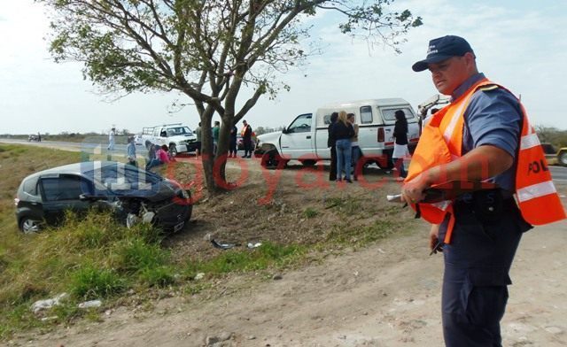 En la tarde de hoy martes cerca de las 14 horas se registro un accidente automovilístico que pudo ser fatal. Sobre ruta provincial 27 a la altura del Km 126 dos vehículos que provenían de la zona sur sentido norte tras circunstancias aun no claras, estos se tocan entre si y uno de ellos va a dar contra un árbol para luego terminar junto a un canal junto a la ruta. Los automóviles involucrados son un Chevrolet Silverado Gris perla dominio CEL 078 guiado por Núñez Raúl, el cual era utilizada para el traslado de docentes y un Honda Fit verde militar chapa patente HWI 314 conducido por Calvo Salvatore Roberto en el que circulaban turistas de Resistencia Chaco.(IMÁGENES)