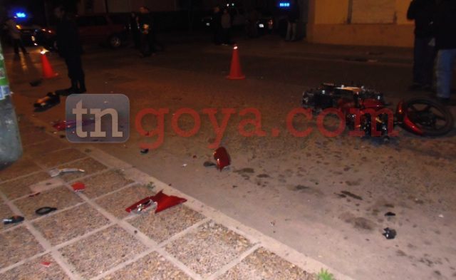 En la noche del domingo en las esquinas de Colon y Ferre un motociclista que se desplazaba a bordo de una moto Brava 150 de color bordo dominio 103JGL de apellido Ramos impacto contra un vehículo Eco Sport roja chapa patente FKY 147 conducido por un ciudadano de apellido Ojeda.(IMÁGENES)
