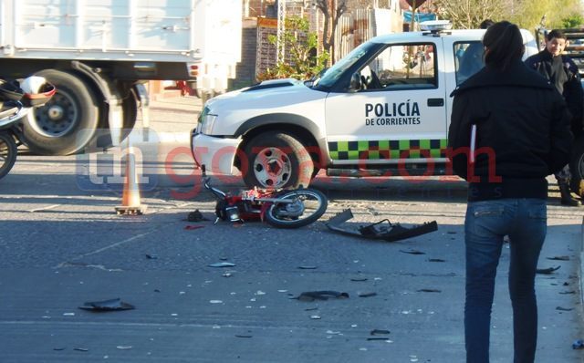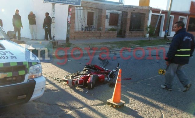 En horas de la tarde del lunes se registro otro accidente de tránsito en la zona norte de la ciudad, en esta ocasión un joven de 15 años de nombre Martin quien conducía una motocicleta Dailem de color rojo al llegar a las intersecciones de las calles Paso de Libres esquina Pago Largo por razones que se investigan impacto contara un vehículo VW Caddy gris dominio DKP682. (IMAGENES)