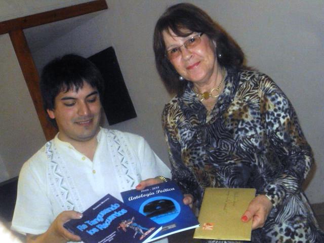 Marcos Damián González presentó su nuevo libro “Mi alma con un verso bajo el brazo”, este sábado en el salón Don Pedro de nuestra ciudad. El análisis literario estuvo a cargo de la presidenta de SADE Goya, Lic. Viviana Ortiz de Cavalieri, y la presentación del autor fue una original dramatización de su colega José Raúl Dittmann. Mi alma con un verso bajo el brazo, es el segundo poemario de Marcos Damián González, y cuarto libro publicado. Fue declarado de interés cultural, por la Dirección Municipal de Cultura.
