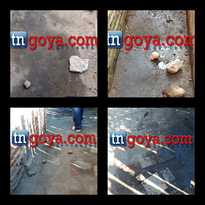 En la mañana de ayer vecinos y familiares del señor Pereyra con domicilio en calle Jujuy al 1100 se comunicaron con la redacción de TNGOYA y manifestaron su indignación y preocupación por la falta de presencia policial en dicho barrio. En horas de la madrugada de ayer dos grupos se enfrentaron entre sí y como consecuencia de ello, la casa de don Pereyra quedo en medio de dicho enfrentamiento, no podía creer lo que sucedía conto, llame a mi hijo que se hallaba trabajando y este desde su trabajo realizo decenas de llamadas a la comisaria para que lo asistieran al padre que se encontraba temeroso por su vida. Como no tuve respuesta manifestó el hijo, este pidió permiso en el trabajo y al llegar a la casa del padre lo encontró en estado de shock, temblando y luego rompió en llanto por el momento que debió pasar. (IMÁGENES)