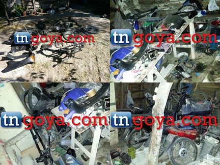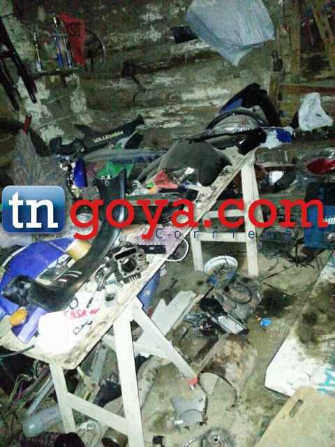 La policía de corrientes realizo un allanamiento en una vivienda ubicada en el Br. Alberdi en la zona sur de Goya, dando resultado positivo ya que se secuestro varias motocicletas de distintos modelos, además también una gran cantidad de moto partes. Todo lo secuestrado estaban ocultos en un precario lugar que era utilizado como taller, donde desguazaban las motocicletas que eran robadas en la ciudad. Las pesquisas del procedimiento se dieron luego de los robos que se venían dando reiterativamente en la ciudad y dentro de lo recuperado estaba una motocicleta marca Honda Wave de un agente de dicha institución que sufriera el robo la semana pasada. IMÁGENES EXCLUSIVAS DEL ALLANAMIENTO