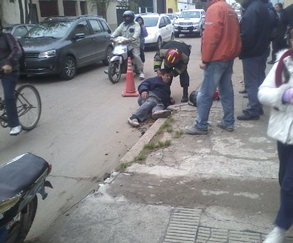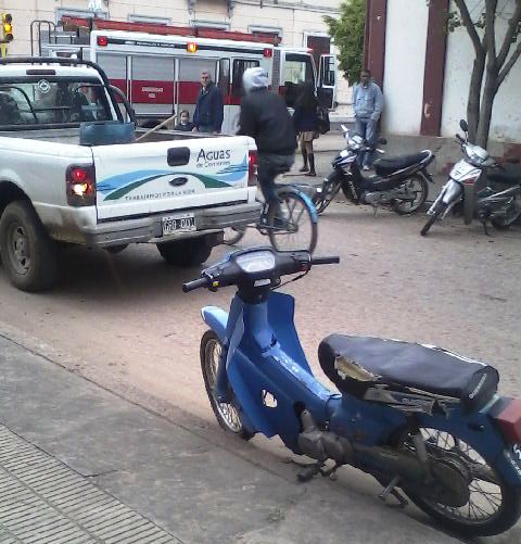 En la mañana un hombre de apellido Ayala a bordo de una motocicleta Guerrero termino con golpes en una pierna al colisionar con una camioneta que brinda servicios para Aguas de Corrientes, ambos circulaban por el mismo carril y se pudo saber que el vehículo mayor al frenar por el semáforo ubicado en Juan E. Martínez y Corrientes termino siendo embestido por la moto, cuyo conductor al cayo al pavimento. Fue trasladado al Hospital en ambulancia. IMAGENES
