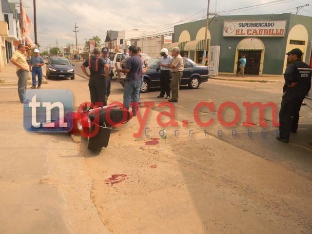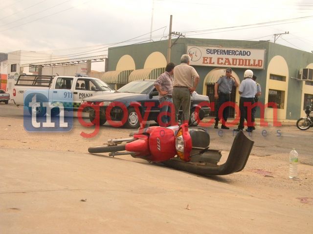 El hecho ocurrió a las 15: 00 hs aproximadamente en la siesta del viernes, donde una motocicleta venia circulando de sur a norte por la Avda Rolón y al llegar a la calle L. Agote se encontró con un automóvil Renaul 19 dominio BZA 199 conducido por un ciudadano muy conocido “Carozo” Núñez que intentaba cruzar, mas allá de que trato de evitar el impacto todo fue inútil ya que el conductor del auto no freno a tiempo y no se percató, lo que provoco el choque, ambos ocupantes de la motocicleta fueron a parar a la cinta asfáltica, si bien el menor prácticamente salió ileso, la mujer identificada como Andrea Vallejos de uno 50 años sufrió fuertes golpes en las piernas, principalmente en las rodilla IMAGENES