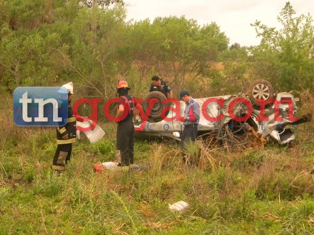 Colisión despiste y vuelco de dos automóviles en la Zona Rural de Goya