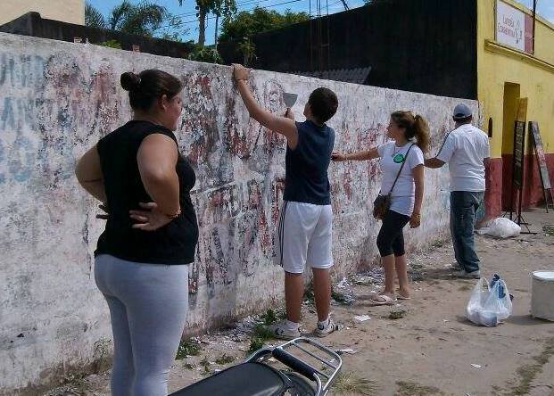 Primer paso autorización de la propietaria para de utilizar espacio privado y limpieza del muro