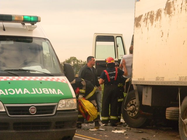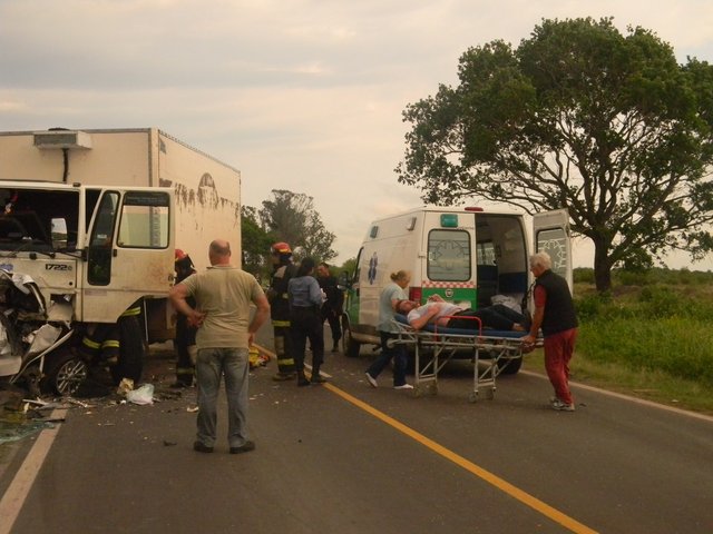 Primer medio en el lugar: Muere aplastada una persona en accidente entre camión y una camioneta en Goya