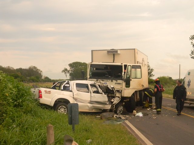 Esta mañana chocaron de frente un camión térmico cargo y una camioneta doble cabina, Toyota Hilux, en la zona de paraje El Zorzalito en la ruta Nacional Nº 12, pocos kilómetros al Sur de Goya. De acuerdo a los primeros informes, personal de Bomberos y efectivos policiales trabajan para rescatar al conductor de la camioneta que como consecuencia del impacto falleció.El conductor del rodado más grande fue asistido por bomberos y llevado en ambulancia hospital regional para su mejor y pronta atención. Hasta el momento se desconocen los datos de los involucrados. El equipo de TNGOYA trabaja desde el lugar de los hechos. AMPLIAREMOS IMAGENES EXCLUSIVAS