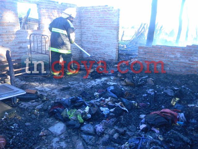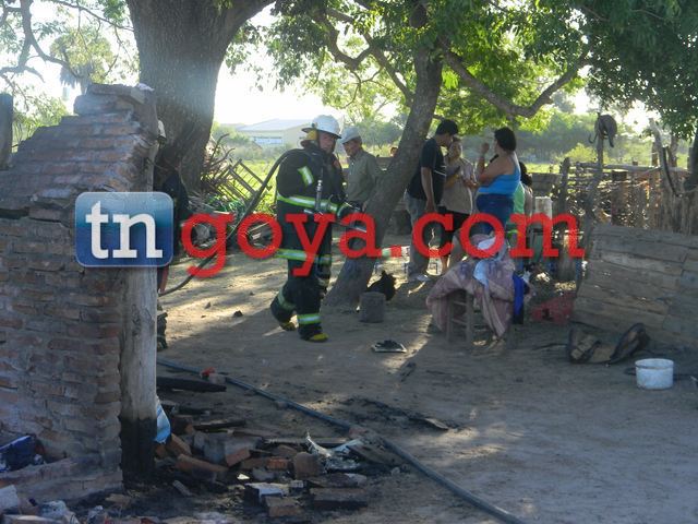 En la tarde del miércoles una vivienda se incendio y quedo totalmente destruida en la Tercera Sección Paraje Isla Sola a unos 12 Km de Goya, al parecer el foco ígneo se habría originado por una chispa de un brasero que estaba al lado de la casa, donde vive la familia Machuca quienes quedaron con lo puesto ya que las llamas devoraron todo rápidamente. Un cuerpo activo de bomberos voluntarios se hizo presente en el lugar, pero nada pudieron hacer ya que el fuego avanzo rápidamente. Por la intensidad del fuego se derrumbaron las paredes. La familia queda a la deriva porque el lugar es inhabitable, además todas sus pertenencias se quemó. Una d elas personas fue trasladada al Hospital producto de una descompensacion que sufrio por la tragedia que les todo vivir. IMÁGENES DEL HECHO