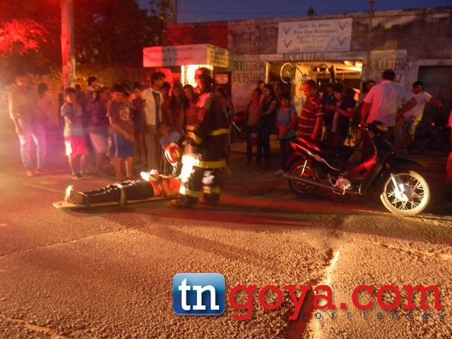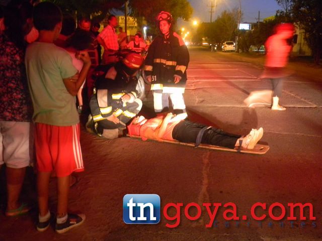 Una mujer identificada como Josefina Gonzales resulto con golpes en la cadera y cabeza, producto de la caída al pavimento al embestir con un ciclista, cuya identidad no trascendió. La motociclista fue asistida por una dotación de Bomberos y luego trasladad en una ambulancia privada al nosocomio local, producto que los teléfonos del nosocomio local daban ocupados todo el tiempo y en el lugar del hecho apareció pasado 30 minutos. También resulto herido un menor discapacitado que iba en el rodado mayor de acompañante, en tanto el joven que transitaba en la bicicleta fue demorado por personal de la comisaria cuarta. IMÁGENES