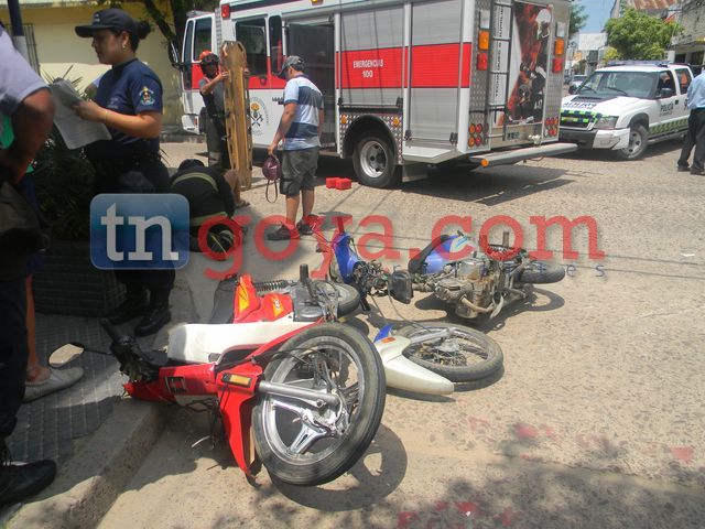 En la siesta del viernes ocurrió un siniestro vial entre una Motocicleta marca Gerrero Magic guiado por Ezequiel Moreira, quien transitaba por calle 25 de Mayo y al llegar con la intersección de Belgrano embiste contra una Gilera Smash, donde en el tremendo impacto se parte en dos, dicho rodado era conducido por Esteban M. de 17 años quien llevaba de acompañante a la joven Jesica G. la joven cuando cae pesadamente al pavimento resulta con múltiples golpes, quedando tendida en el suelo sin poder moverse, fue asistida por una dotación de Bomberos y trasladad al nosocomio local en una ambulancia privada. IMÁGENES