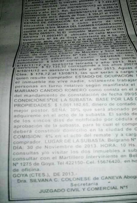 En la sección Edictos del diario local Primera Hora apareció el anuncio de la terrible noticia del remate de los inmuebles de Lt6 Am 1200 Khz ubicado en Mariano I. Loza 231 y la planta transmisora en calle Mauricio Valenzuela 98, el motivo es por una abultada deuda que tiene la Radio madre de Goya con la Dirección Provincial de Energía de Corrientes. La fecha de la dicha subasta ser el 30 de Noviembre del 2013, en calle Belgrano al 1275, las condiciones de la base por las dos propiedades es de $1.061.182,65. La noticia genera gran preocupación en el medio ya que dicha AM se vio devastada en varias administraciones y hasta el día de hoy no se logra poner en pie. La actual Cooperativa se ve desbordada por mantener en pie la Voz de los Goyanos.