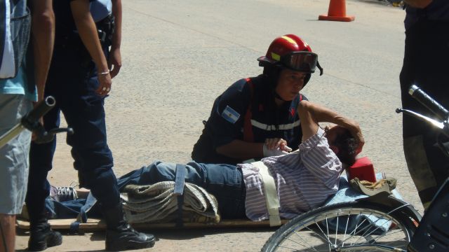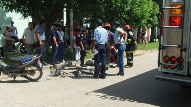 El siniestro vial ocurrió en la mañana del lunes en calle Pago Largo, frente al comedor del Centro de Jubilados de Goya, donde un anciano identificado como Jorge Peters se prestaba a bajar a la calle con su bicicleta y un joven motociclista lo embiste y termina siendo arrastrado unos 6 metros, el ciclista según se pudo saber habría sufrido fractura en una pierna, fue asistidos pro bomberos y luego trasladado al Hospital regional. IMAGEN