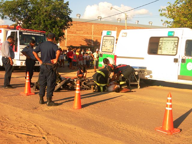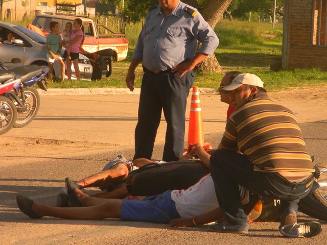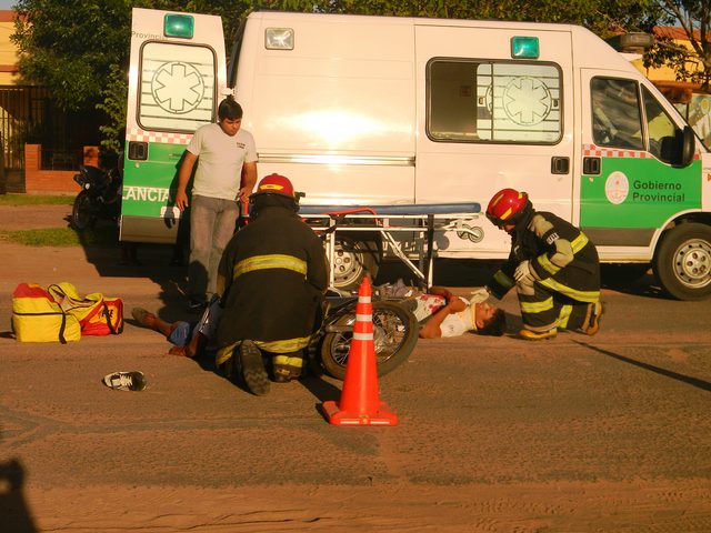Jóvenes con serias lesiones serias en sus piernas y cabeza al protagonizar siniestro vial en la intersección de Av. Francisco Sa y Lisandro de Latorre en la zona sur de Goya, los mismos impactaron la parte derecha de un Renault 12, quedando aboyada las puertas y la rotura de una ventanilla. Fueron asistidos por una dotación de bomberos quienes les brindaron las primeras atenciones, siendo luego trasladados al nosocomio local en ambulancia. IMÁGENES