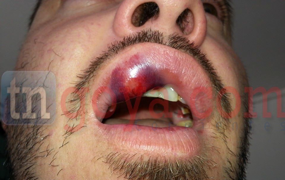 Asi le quedo la boca de la trompada al joven después del operativo.