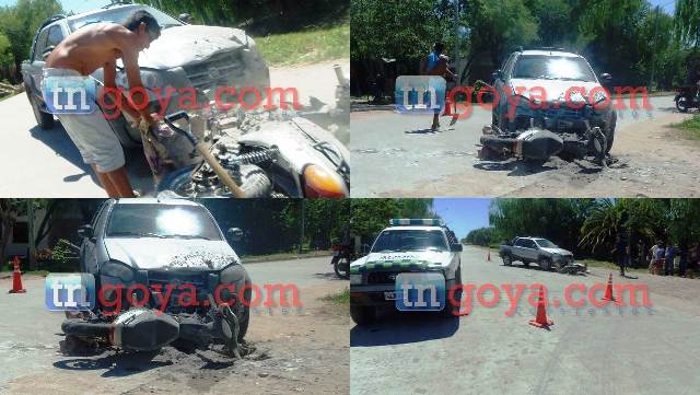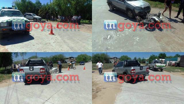 Alrededor de las 11 de la mañana una camioneta utilitaria marca FIAT Adventure de color gris dominio KKE 346 cuyo datos del conductor no trascendió, este impacto a una motocicleta marca Guerrero trip Tunning de color gris y sin dominio guiado por el ciudadano Antonio Tuama de 28 años de edad quien resulto con herida cortante en una de sus piernas; todo esto ocurrió en las calles Chile y Viamonte del B° Arco Iris.