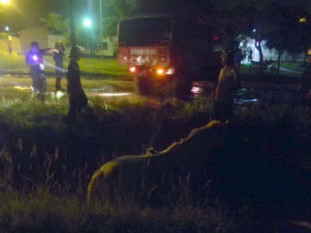 El hecho ocurrió en la noche del jueves en Br. 90 vivienda en la zona Sur de Goya, donde un equino cayó a un canal a cielo abierto y no podía salir, los propietarios pidieron colaboración a Bomberos y un cuerpo activo acudió al lugar para socorrer al animal, luego de varios minutos dicho personal lograron sacarlo sano y salvo del lugar. IMAGEN