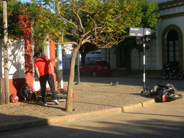 En la mañana del día sábado un joven de apellido Velásquez perteneciente al batallón mte 12 de Goya quien iba a bordo de una motocicleta 125 c/c termina incrustado contra un muro perimetral de una vivienda en la intersección de Tucumán y mariano i. loza, todo se suscitó al protagonizar siniestro vial con otro motociclista que circulaba a bordo de un rodado de 110 c/c de apellido Giglio, quien cae pesadamente a la vereda resultando ambos con serias lesiones. Fueron asistidos por bomberos y trasladados de urgencia al Hospital Regional. (Imágenes)