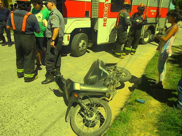 En la siesta del sábado una mujer quien iba a bordo de una motocicleta marca Cerro, debió ser hospitalizada luego de caer al pavimento Producto que un animal canino se le cruzara en el camino en la intersección de Cabral y Corrientes. Recibió lesiones varias, fue asistida por una dotación de bomberos quienes les brindaron las primeras asistencias. IMÁGENES