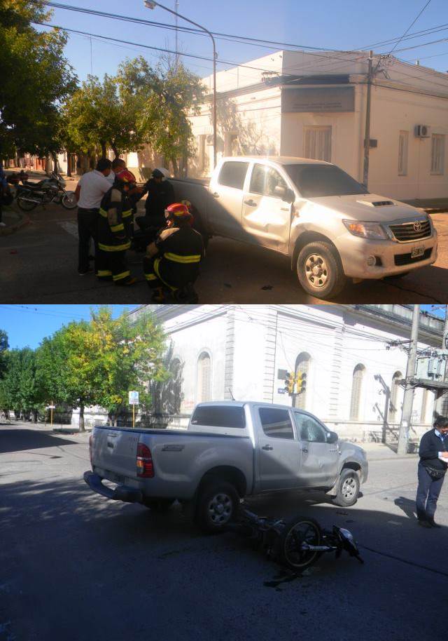 En la mañana del domingo joven a bordo de una motocicleta Honda Wave que transitaba por Bartolomé Mitre, impacta con una camioneta al llegar con intersección de Mariano I. Loza, que era conducida por el director de Transporte de la Provincia, Darío Ortiz. El motociclista incrusta la cabeza contra la ventanilla del rodado marca Toyota Hilux y cae lesionado en el pavimento, al momento del hecho no se sabía su identidad ya que no portaba ninguna identificación y tampoco documentación del vehículo en el que se movilizaba. Fue asistido por bomberos y trasladado al Hospital Regional. IMÁGENES