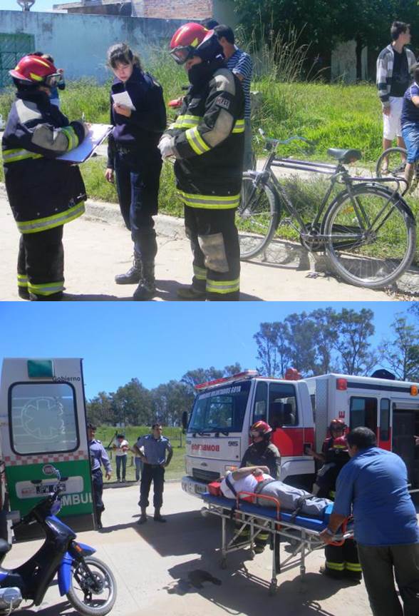 El siniestro vial ocurrió en Av. Juan Perón casi Eva Perón de la zona Sur de Goya, donde una joven de apellido Ledesma que se trasladaba a bordo de una motocicleta marca Citi de 110 c.c, embiste de atrás una bicicleta, quienes se desplazaban un hombre y mujer de apellido Godoy y Chamorro, la motociclista relato que manipulo un celular y eso causo el choque, los ciclistas fueron los lesionados cayendo al pavimento pesadamente, fueron asistidos por una dotación de Bomberos y luego trasladados al Hospital Regional. IMÁGENES