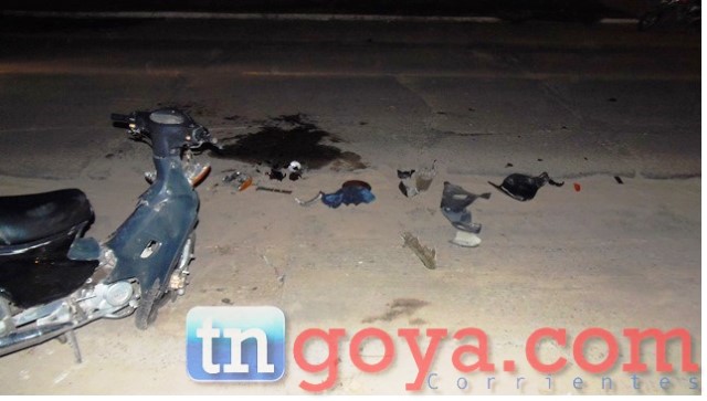 Ocurrió el domingo a la madrugada, dos personas de sexo masculino que se desplazaban a bordo de una motocicleta Appia, de color negro, dominio 341 HKG impactan de frente con otra moto en las esquinas de avenida Rolon y Alvear.(IMÁGENES EXCLUSIVAS)
