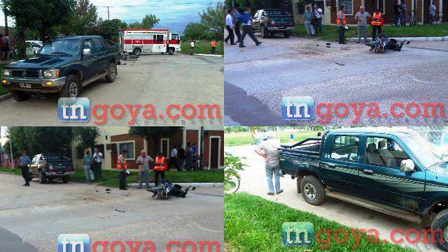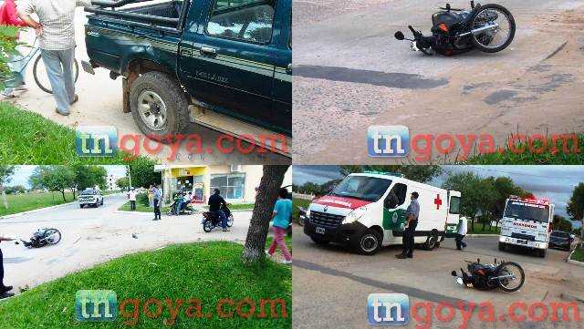Alrededor de las 18,30 un joven motociclista identificado como Moreira quien se desplazaba a bordo de una moto Honda Wave de color negra dominio 653 JRA de norte a sur por calle Pago Largo y al llegar a la intersección de calle Mercedes termino impactando la parte trasera de una camioneta Toyota chapa patente DSI 589 guiado por el ciudadano Vicentin Pedro. (IMÁGENES DEL LUGAR)