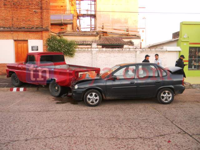 En la mañana del domingo un joven a bordo de un automóvil Chevrolet Corsa identificado como Mongelo Pedro, transitaba por calle 9 de Julio y a metros con la intersección con Mariano I. Loza, choca la parte trasera de una camioneta marca Chevrolet, que se encontraba estacionada, el impacto de tal magnitud que la arrastró unos metros y termina sobre la vereda. IMÁGENES DEL SINIESTRO VIAL.