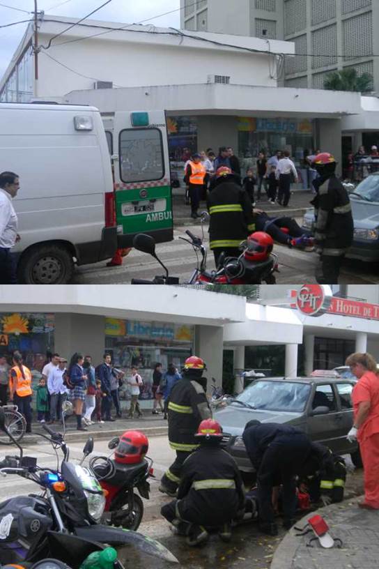 En la esquina de Mitre y Mariano I. Loza una mujer de apellido Gómez que iba a bordo de una motocicleta de 70 c.c, resulto lesionadas en una pierna al caer pesadamente en el pavimento, luego de que fuera impactada desde atrás por un automóvil, que oficia de remis. Fue asistida por bomberos y luego trasladada al nosocomio local. IMAGENES