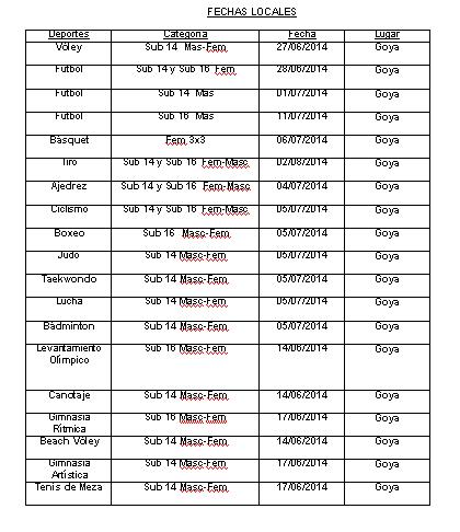 La Dirección de Deportes envió un informe donde consta fechas, categorías y horarios de las disciplinas deportivas de los juegos EVITA 2014.