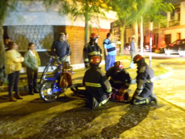 Se registró un siniestro vil en la noche del jueves, por razones que se tratan de establecer un automóvil Honda CR-V conducido por una mujer de apellido Pando, que transitaba por Juan E. Martinez impacta con una motocicleta marca Gerrero Magic 70 c.c que transitaba por Evaristo López, guiada por una joven, quien resulto con serias lesiones al caer en el pavimento, una dotación de bomberos la asistió y debieron entablillar un brazo e inmovilizarla en una tabla de raquis. IMÁGENES
