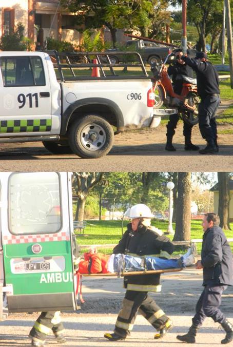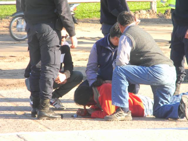 En la tarde del viernes un conductor identificado como Ramón Martínez, resultó con heridas cortantes en el rostro al derrapar y caer a la cinta asfáltica. El motociclista transitaba de Oeste a Este, por Avda. Sarmiento y se accidento a la altura de la plazoleta Pedro Ferre. Fue asistido por bomberos y trasladado al nosocomio local. IMAGENES