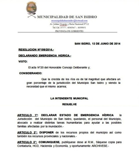La Sra intendente de San Isidro declaro emergencia hídrica en la región