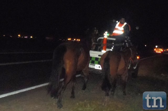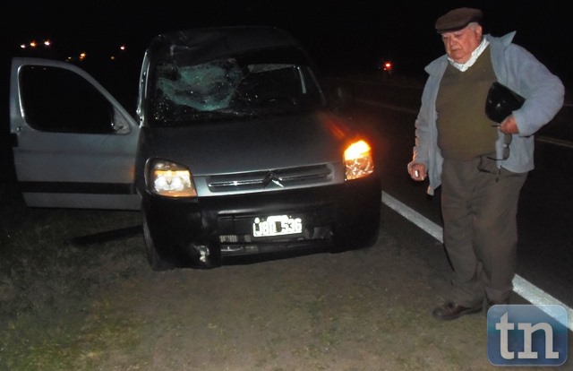 Una camioneta marca Citroën, conducida por un hombre de apellido Pujol embistió a un equino cuando transitaba sentido Sur-Norte, en la noche del jueves, sobre Ruta Nac. 12 en el acceso sur de Goya, el conductor relato a cronistas de TNGOYA, que nada pudo hacer ya que dos equinos se les atravesaron al frente y a uno no pudo esquivar y terminaron chocando. Afortunadamente solo se registró daños materiales, en el rodado en la parte derecha, con rotura del parabrisas y abolladura en la parte del techo. IMÁGENES