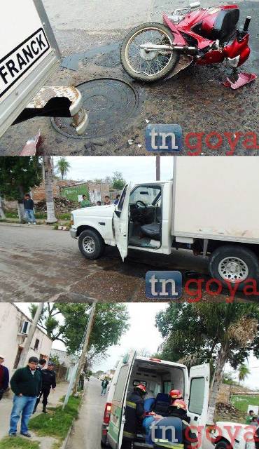 En la mañana del miércoles un sujeto identificado como Buchón Rodrigo de 18 años, quien circulaba a bordo de una motocicleta marca Honda Wave de color Bordo sin dominio y sin documentación que acreditase su procedencia tras circular a gran velocidad por calle 9 de Julio con la intersección de Ángel Soto impacto de lleno a una camioneta de reparto guiado por el ciudadano Ferragut Felipe. (IMÁGENES)