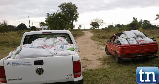 JUNTO A LA GENTE: La intendente entrego alimentos para animales a productores anegados por el agua