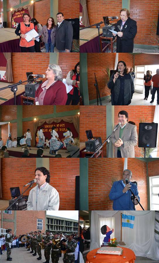 Acompañaron al Jefe Comunal los directores de Educación Daniel Lesteime, y de Cultura Mariano Maciel, los concejales Ludmila Baldi Escobar y Pablo Monzón, quienes hicieron entrega de la Resolución del Concejo Deliberante declarando de Interés Municipal el acto de imposición de nombre. También estuvieron presentes también el Presidente del Consejo General de Educación, Ricardo José Torres, la Vocal del Consejo Ninfa Mara Dejuanes; la Supervisora Mirta Zone de Pozzer, Cristina Leyes de Pittón; la Presidente de la Junta de Disciplina Silvia Roldán. Asimismo representantes de las fuerzas armadas y de seguridad, ex directivos, ex docentes y Nélida Genes que fue quien gestionó la imposición del nombre, familiares y amigos de Oscar Morán. El acto dio inicio con la Bandera de Ceremonia del Establecimiento y la de Corrientes, que se sumaron a las de las demás escuelas que acompañaron tan emotivo acto, tras lo cual los presentes entonaron las estrofas del Himno Nacional Argentino, que interpretó la Banda de Música Puerto Argentino del Batallón de Ingenieros de Monte 12. Seguidamente la Vicedirectora Roxana Correa D´Alessandro se dio lectura a la Resolución Nº 64 de fecha 7 de febrero de 2014, mediante la cual se dio nombre a la Escuela Nº 601. DESCUBRIMIENTO DE PLACA Luego el Intendente Gerardo Bassi, la Supervisora Cristina Leyes de Pittón, la Directora de la Escuela Susana Meneguini, y Ana Morán descubrieron la placa que recuerda el acto de ese día, junto con el Padre Adolfo Gutiérrez que hizo la bendición. OSCAR ADOLFO MORÁN Quien fuera una de las personas que gestionó que se imponga el nombre de Oscar Morán a la escuela, Nélida Genes, hizo un reseña de quien fuera en vida, de quien dijo que dejó gran parte de la misma en pos de la educación, pasando desde su nacimiento, lugares de estudio, etc. Falleció en Goya el 20 de octubre de 2003. Destacó sus virtudes como docente, directivo, colega y amigo. Luego los concejales Ludmila Baldi y Pablo Monzón entregaron copia de la Resolución del Honorable Concejo Deliberante de Goya declarando de Interés, a la Directora Susana Meneguini. También tuvo palabras de reconocimiento a Oscar Morán la señora Zulma Rosas de Alcaráz, y tras ese recuerdo emocionado la Directora Susana Meneguini fue la encargada de hacer una recorrida por la historia del establecimiento educativo, desde su creación el 14 de octubre de 1918 en el paraje denominado Caferatta en la Cuarta Sección Goya, hasta la actualidad en que se le da una identidad reconociendo a una persona que fue y sigue siendo un ejemplo a imitar. La ex Directora de la Escuela Nº 65 Isabel King y ex docente de ese establecimiento, Lita Maciel de Romero fue otra de las oradoras que hizo un reseña sobre quién fue Oscar Morán y qué significó como docente y directivo, influyendo enormemente en los maestros con sus conceptos claros sobre la educación y la responsabilidad de los educadores, aplicando la solidaridad de ver al otro en la patria, dando siempre una mano a todos quienes pudo, sin tener límites en sus horarios de trabajo. Se sumó a quienes hablaron en la jornada la Supervisora Escolar Cristina Leyes de Pittón, quien enfatizó que era una jornada histórica para la Escuela Nº 601 por la imposición del nombre, que no es ornamental sino que implica compromiso y calidad de la enseñanza, las actuaciones y las relaciones inter personales, instalando procesos de mejora continuada. Tras estos discursos, alumnos del establecimiento bailaron El Pericón Nacional, preparados por la maestra de música Gladis Gómez. Les siguió la Agrupación Folklórica Nuestra Huella de Carolina, a cargo de Ángel Casafús, quienes danzaron chacareras y chamamé. Los Directores de Educación, Daniel Lesteime, y de Cultura, Mariano Maciel, fueron invitados a dirigir unas palabras. Daniel Lesteime destacó el hecho de dar identidad al establecimiento y se puso a disposición él y la Dirección que orienta para los hechos que sean necesarios. Mientras que Mariano Maciel dijo que al ser su padre también docente, el nombre de “Pelusa” Morán se escuchaba muy seguido en su casa, y sin dudas dejó una huella muy profunda entre los docentes y los alumnos. Felicitó a los docentes y pidió que entre todos se pueda hacer una Argentina mejor, de inclusión y de profundos ideales y de respeto. INTENDENTE GERARDO BASSI El último orador fue el Intendente Gerardo Bassi, quien recordó a sus padres docentes y que conoció a Pelusa Morán, diciendo que es muy válido el reconocimiento de quienes dieron su vida por la educación, y resaltó a otros como “Noni” Díaz Colodrero que estaba presente. Analizó que la educación es lo que nivela y equilibra, y que con educación los más humildes pueden tener una oportunidad en la vida, y que quienes tuvieron la suerte de tener una, tienen la obligación de multiplicarla, ya que las adversidades están para ser superadas y vencidas. Invitó a todos a renovar el compromiso, y mencionó las acciones que desde el municipio se hacen por la educación, tales como el Boleto Estudiantil Gratuito, el subsidio del 50 % del combustible del transporte escolar rural, la posibilidad de estudios universitarios gratuitos, la formación de técnicos de fútbol, en lo que consideró inversiones del estado para generar un escenario de educación libre y gratuita. “A no aflojar, con las ganas de siempre, vayamos todos a construir una sociedad más justa, equitativa y con oportunidades para todos”, concluyó el Jefe Comunal. Tras estas palabas, la Banda Militar interpretó temas del cancionero popular y luego de la finalización del acto, los presentes compartieron un refrigerio.