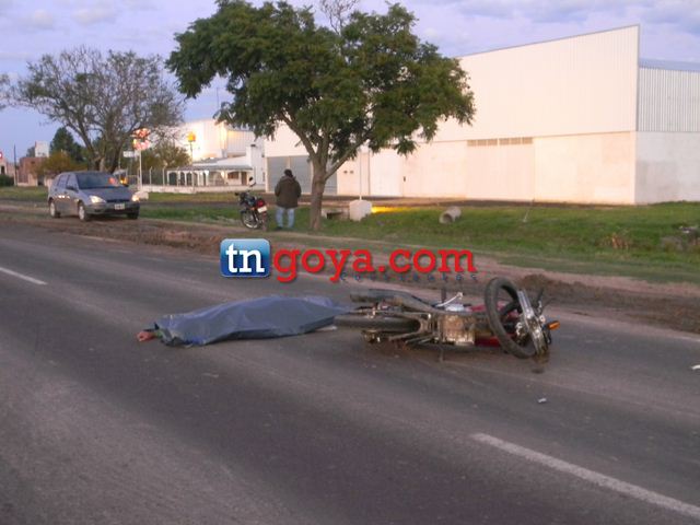 Pasadas las 06:30 hs de este sábado impactan de frente dos motocicletas sobre Ruta provincial 27 en acceso norte de Goya, donde perdió la vida uno de los conductores identificado como Fernando Esquivel de 30 años domiciliado en Br. Belgrano. IMÁGENES
