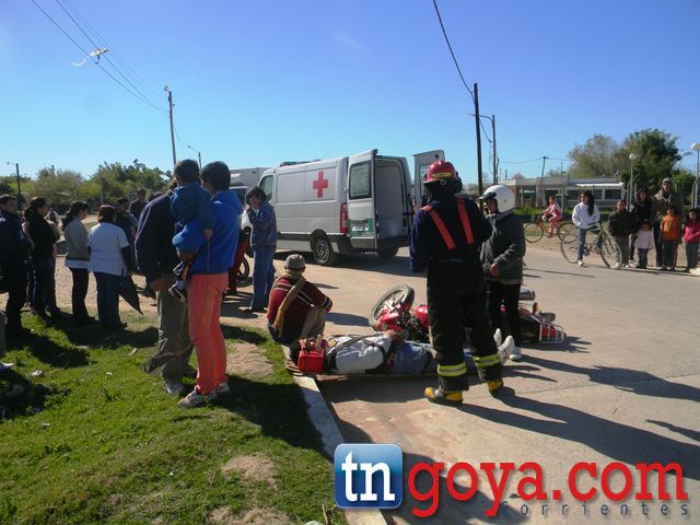 En la mañana del miércoles dos conductores lesionados en el impacto de dos motocicletas de 125 c.c. El siniestro ocurrió en Avda Bicentenario frente al Caps del Barrio Sarmiento, según datos recaudados en el lugar. Los heridos fueron asistidos por bomberos y trasladados al nosocomio local. IMÁGENES