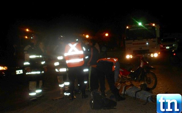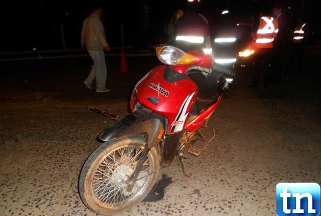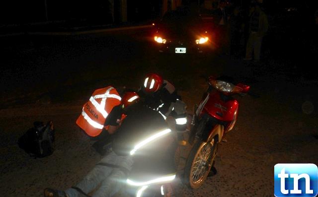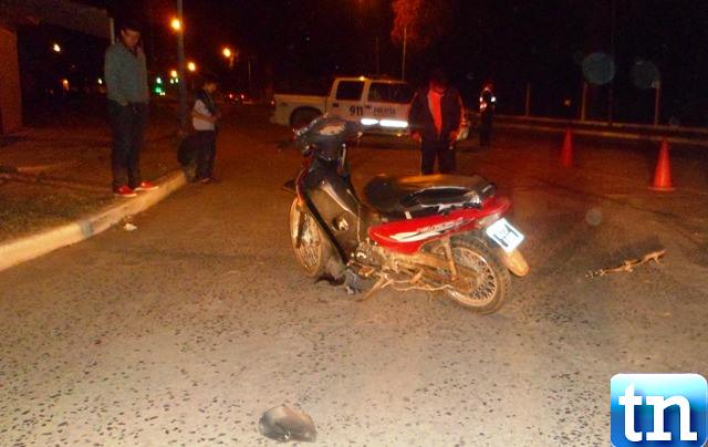 Ocurrió en la noche del sábado donde que un par de sujetos presumiblemente alcoholizados que se desplazaban a bordo de una motocicleta marca Brava 110 c/c 3 de color bordo dominio 027 IQW guiado por el ciudadano Carlos Fabián Monzón de 31 años este era acompañado por Maximiliano Andrés Monzón de 24 años de edad Quien resulto con lesiones tras derrapar luego del impacto al automóvil HONDA CIVIC dominio JNB 748 conducido por el joven Leandro Raúl Pereyra Bercher de 30 años.